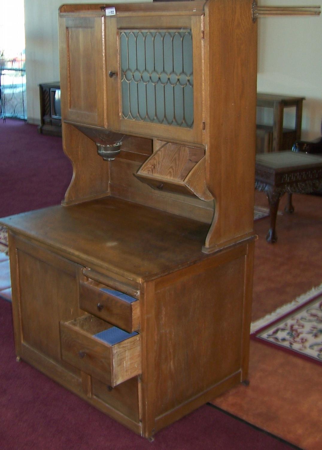 Lot Detail - VINTAGE WOOD HOOSIER CABINET WITH FLOUR BIN ... from www.anyandallauctions.com Antique flour bin | ebay kitchen cabinet hardware: See more ideas about antique kitchen, hoosier cabinets, antique kitchen cabinets. That is evidenced by the woof green flour bin and sifter. Simply browse an extensive selection. Antique oak hoosier kitchen cabinet w/flour sifter, sugar bin & bread drawer from $1,055.00. Antique hoosier cupboards | 1910 hoosier kitchen cabinet w flour sugar bin this nice oak hoosier. Very often taken for granted but always important, these items of office furniture offers a neat safe option for. Antique hoosier kitchen cabinet $300.0.